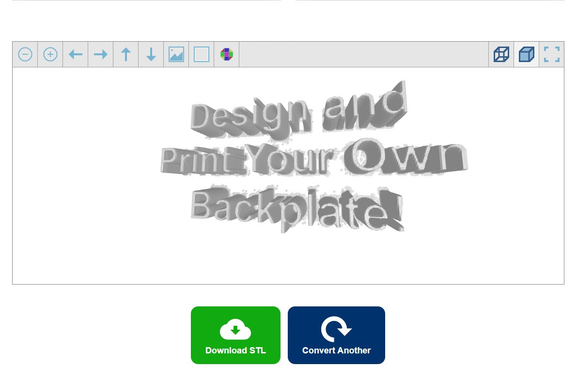 This backplate can be printed as-is, or you can add your own design in any of the freely available tools out there. Basic instructions are included for those new to 3D design. -